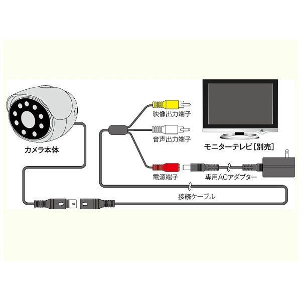 付属品 ACアダプター×1、クリップ式取付金具×1、スタンド式取付金具×1、 取付用ネジ×3、樹脂アンカー×3、接続ケーブル(約18m)×1、 取扱説明書(保証書付)×1