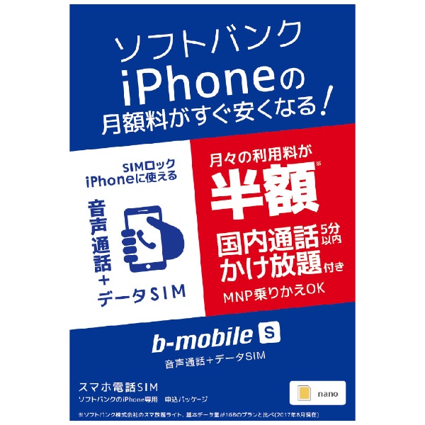 ソフトバンクiPhone版の「b-mobile S スマホ電話SIM」 申込パッケージ ※SIMカード後日発送 BS-IPN-OSV-P