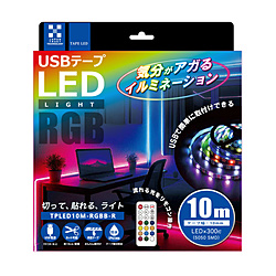 〔USB-A電源〕USBテープLED 流れるRGBリモコン付き [10m] TPLED10M-RGBB-R