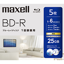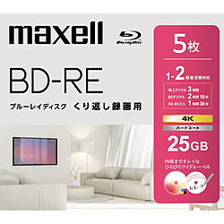 繰り返し録画用ブルーレイディスク BD-RE 5枚入り maxell BEV25WPH.5S [5枚 /25GB /インクジェットプリンター対応]