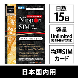 Nippon SIM for Japan 無制限版 15日 毎日3GB 日本国内用 ドコモ回線 プリペイドデータSIMカード DHA-SIM-418 [マルチSIM /SMS非対応]