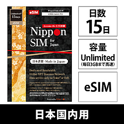 Nippon SIM for Japan eSIM無制限版 15日 毎日3GB 日本国内用ドコモ回線 プリペイドデータ eSIM DHA-SIM-420 [SMS非対応]