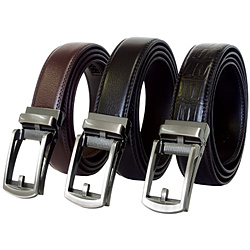 牛革ラチェット式ベルト3本組 黒・茶・黒(クロコ型押し)
