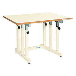 ワークテーブル昇降タイプ RoHS2指令対応塩ビシート天板 W1200×D750×H715〜H1015mm ライトグレー/シルキーホワイト