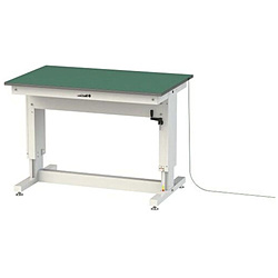 ワークテーブル昇降タイプ 導電性ゴムマット貼りタイプ W1200×D750×H715〜H1015mm 緑マット/シルキーホワイト