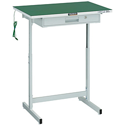 ワークテーブル昇降タイプ 導電性ゴムマット貼りタイプ W1800×D750×H715〜H1015mm 緑マット/シルキーホワイト