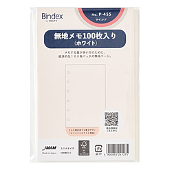 Bindexリフィール B7 無地メモ100枚入り ホワイト P455