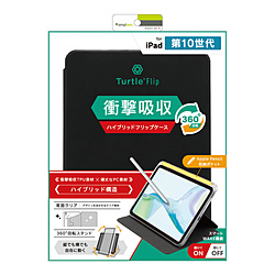 11インチ iPad(A16)、10.9インチ iPad(第10世代)用 Turtle Flip Apple Pencil収納可能 衝撃吸収 ハイブリッドクリアフリップケース ブラック TR-IPD2410-FT-SMBK