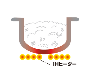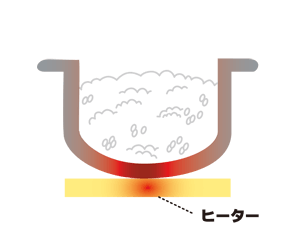 - 内釜を広く加熱することで釜の中で対流を発生させご飯を攪拌。炊きムラを抑えられる