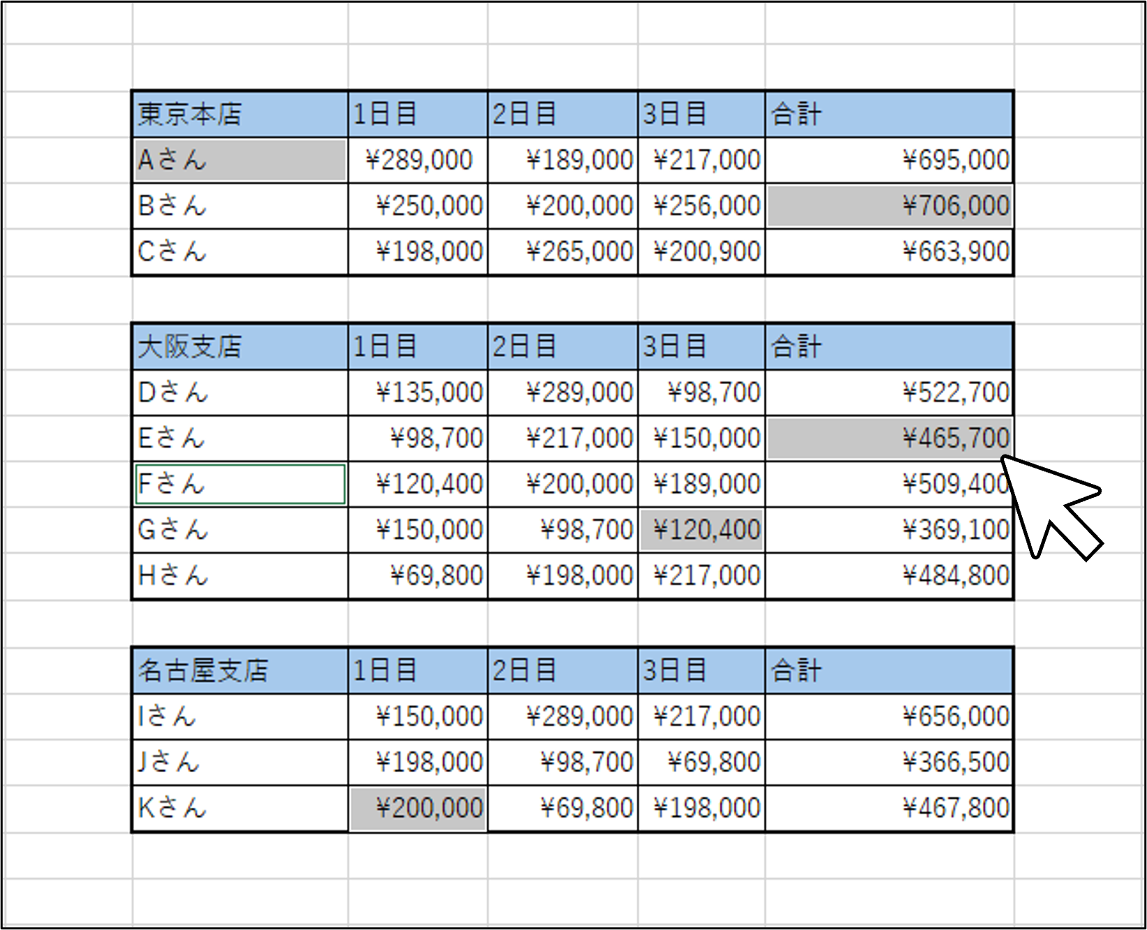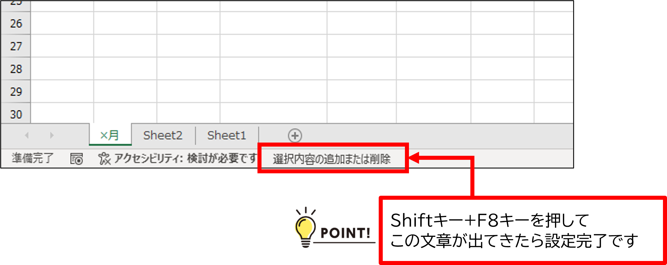 この設定は追加選択モードに切り替わり、隣接していないセルも一緒に選択することができます。