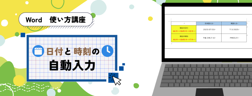 報告書やビジネス文書など、日付が必要な文書を作成するに当たり、手入力以外で日付や時刻を入力することが出系ることはご存じでしたか? このショートカットを覚えて多くと簡単に入力でき、さらに自動更新をかけることが出来て便利になりますよ。