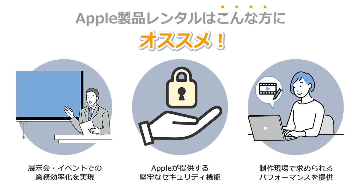 法人向けレンタルで利用できるApple製品を一覧でご紹介。