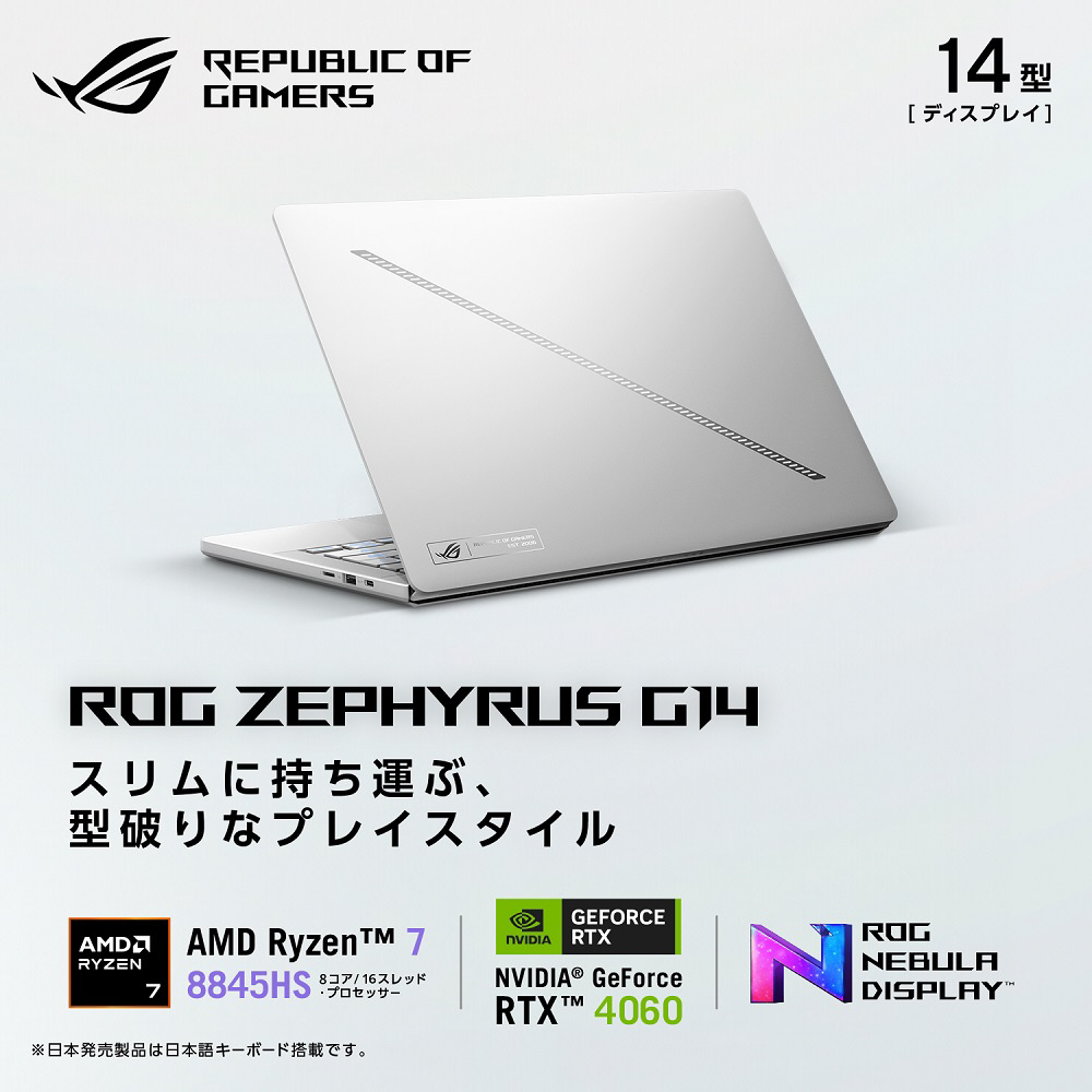 GA403UV-R7R4060W ゲーミングノートパソコン ROG Zephyrus G14 GA403(TX 4060) プラチナホワイト [14.0型 /Windows11 Home /AMD Ryzen 7 /メモリ:32GB /SSD:1TB /日本語版キーボード /2024年3月モデル] 【sof001】