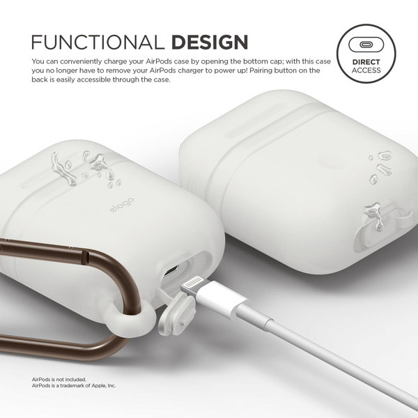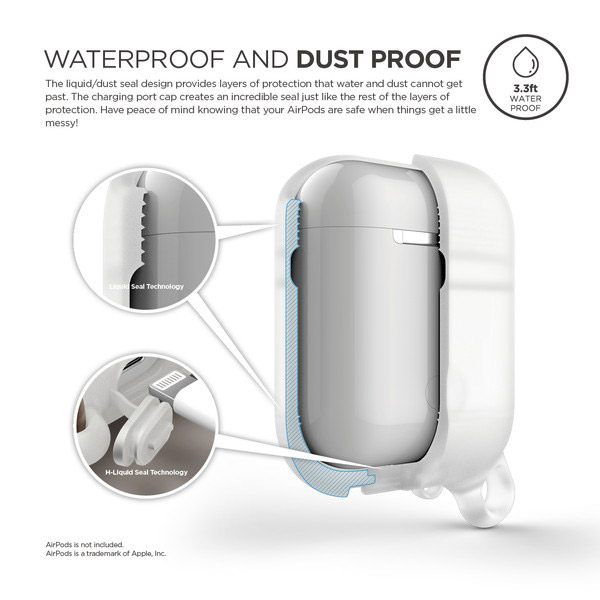 ケースを装着した状態で、お風呂やプールでの水滴や、アウトドア、スポーツでのホコリ、汗など汚れの付きやすい環境でも安心してAirPods本体を守れます。