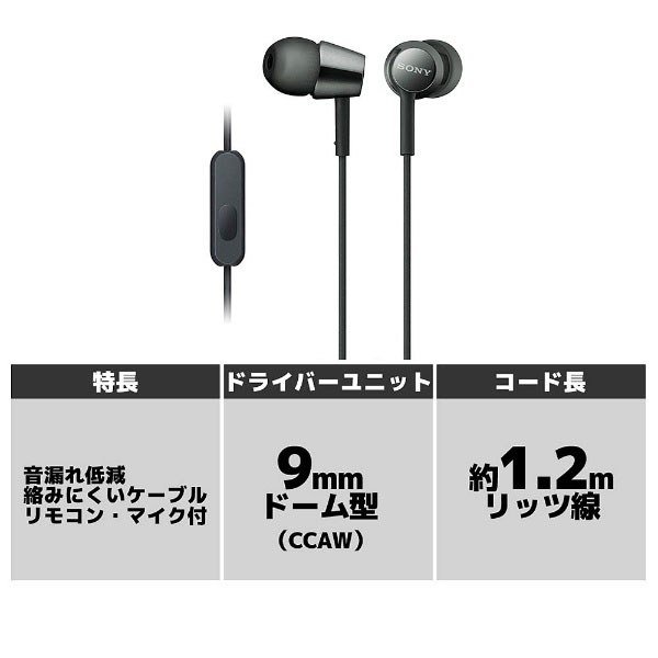 MDR-EX155AP ブラック【リモコン・マイク対応】 カナル型イヤホン