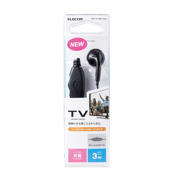 テレビ用モノラルヘッドホン 3.0m Affinity sound ブラック EHP-TV11IM3BK [φ3.5mm ミニプラグ]