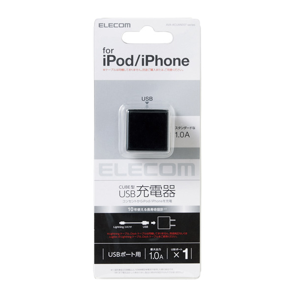 オーディオ用AC充電器 CUBE/1A出力/USB1ポート(ブラック) AVA-ACUAN007BK