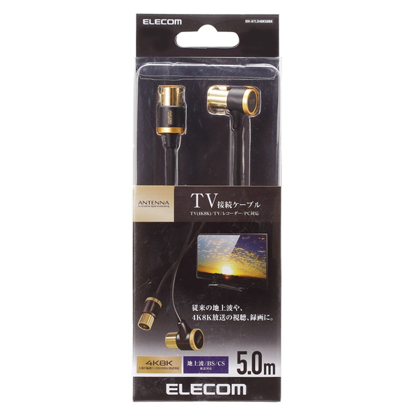 商品名 4K8K対応 5mアンテナケーブル[L型プラグ-ストレートプラグ]ブラック DH-ATLS48K50BK