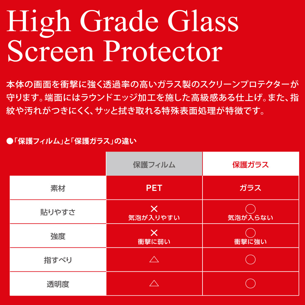 液晶画面を衝撃に強く透過率の高い旭硝子社製ガラスのスクリーンプロテクターが守ります。
