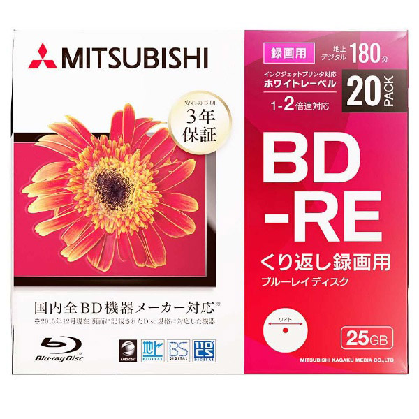 VBE130NP20D1-B 録画用BD-RE [20枚 /25GB /インクジェットプリンター対応] 【864】