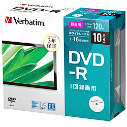録画用 DVD-R 1-16倍速 4.7GB 10枚【5mmスリムケース / インクジェットプリンタ対応】 VHR12JP10D1-B