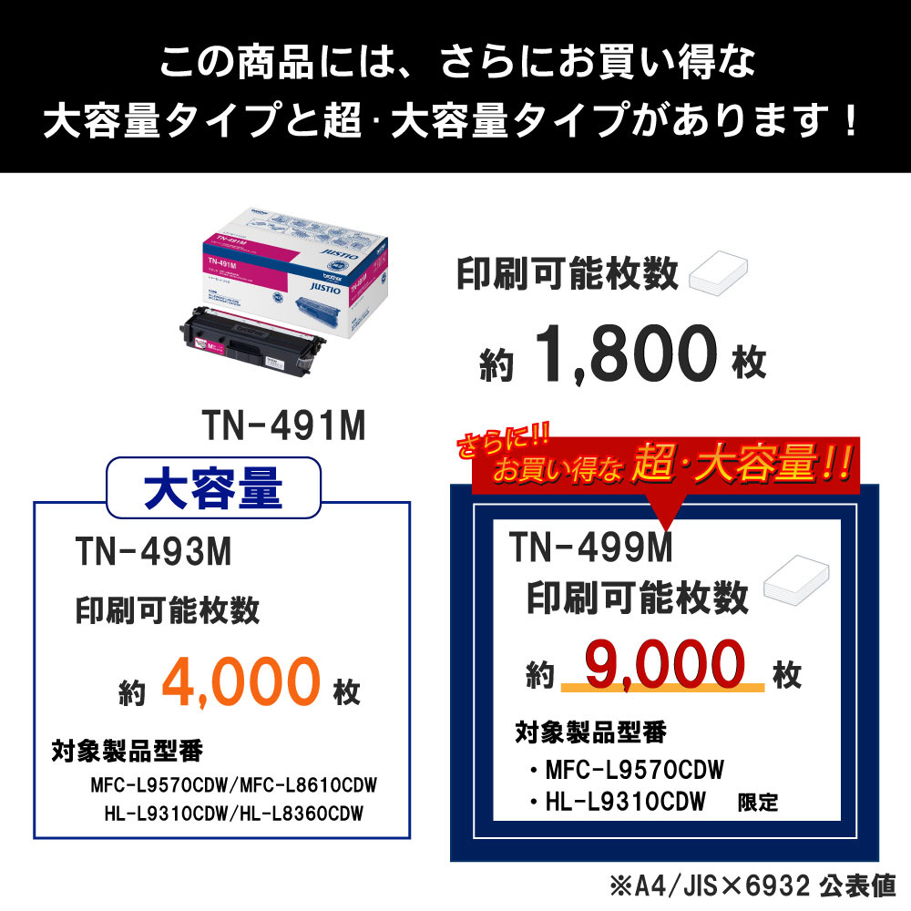 【純正トナー】 TN-491M トナーカートリッジ(マゼンタ) 84GT810M147