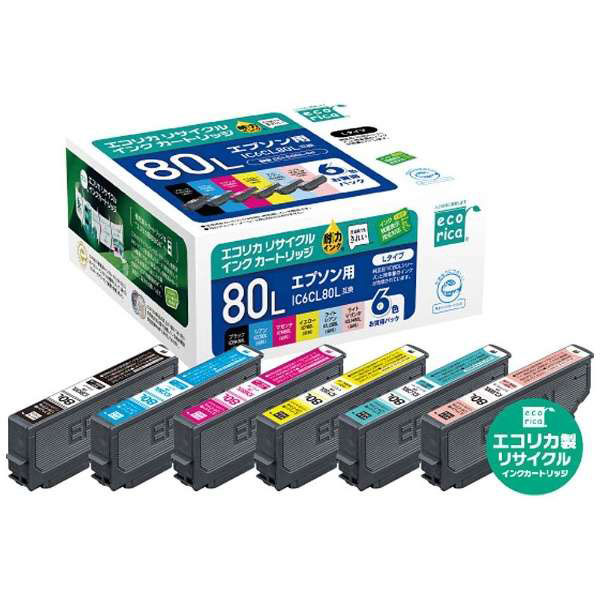 【リサイクル】 [エプソン:IC6CL80L(6色セット)対応]エコリカリサイクルインクカートリッジ ECI-E80L-6P