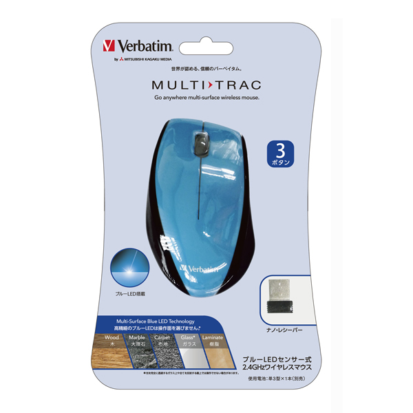 商品名 ワイヤレスBlueLEDマウス [2.4GHz・USB] (3ボタン・ブルー) MUSWBLBV3