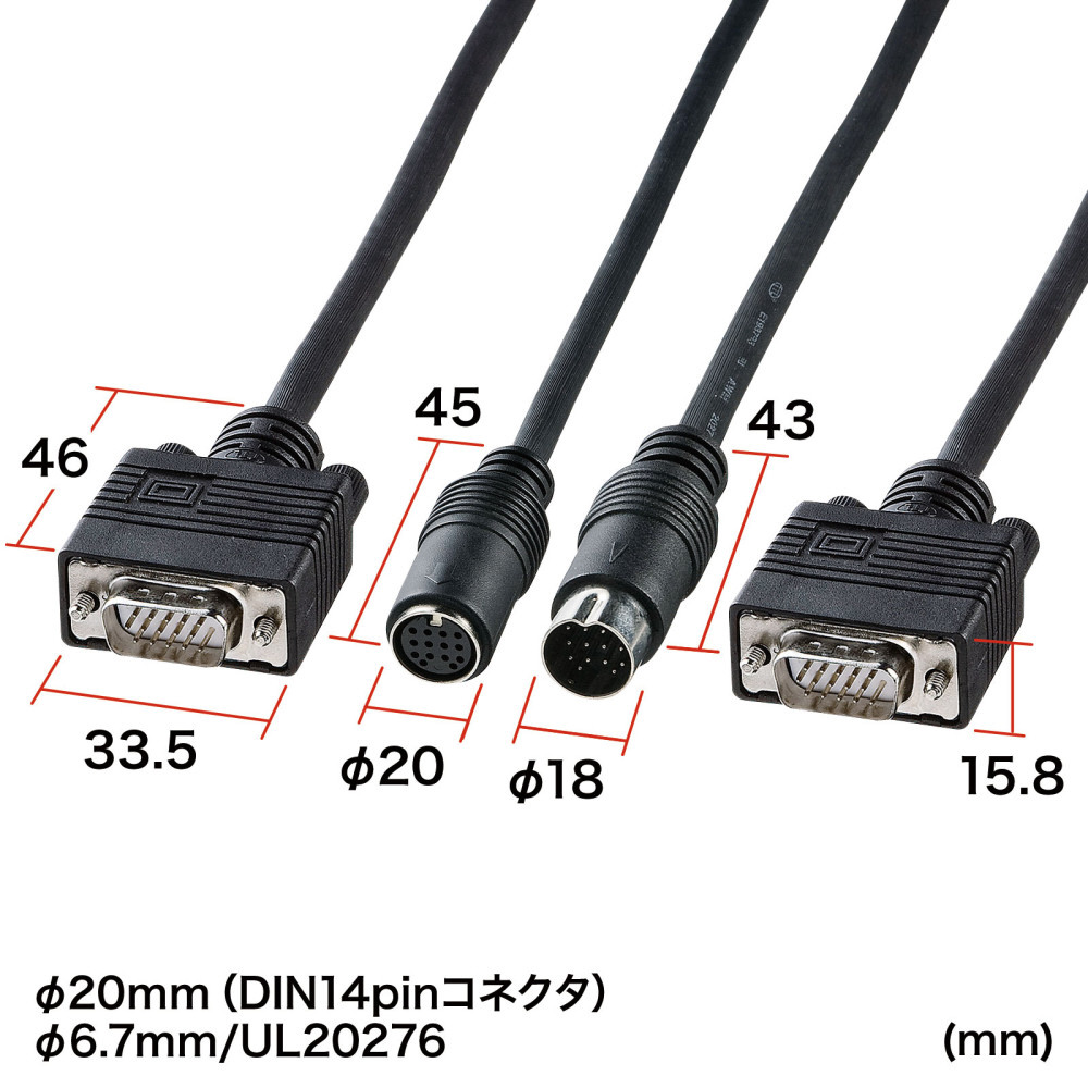 VGA(アナログRGB)用のDINコネクタで中継可能なディスプレイ工事配線用ケーブル。