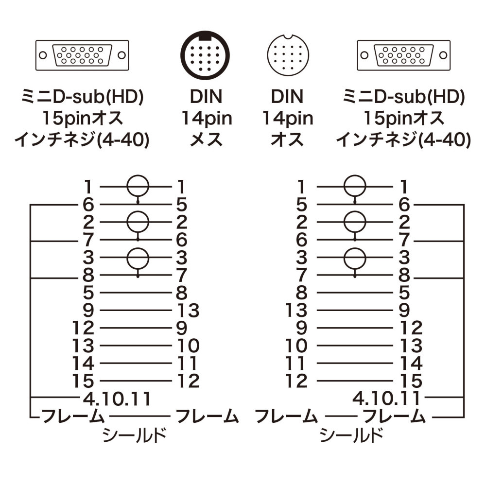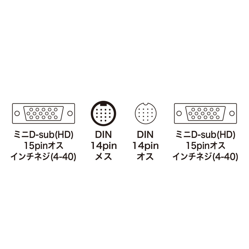 ディスプレイ工事配線ケーブル アナログRGB (ミニD-sub(HD)15pinオスインチネジ(4-40)-DIN14pinオス、ミニD-sub(HD)15pinオスインチネジ(4-40)-DIN14pinメス ・15m)