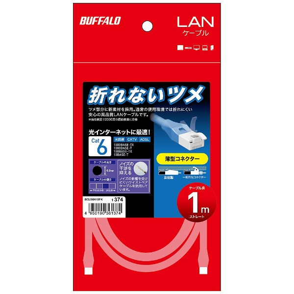 ツメの折れない(※)LANケーブル。高速ネットワーク構築に最適なカテゴリー6対応スタンダードタイプ。