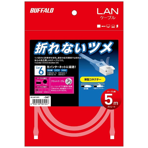 ツメの折れないLANケーブル。カテゴリー6対応。カーペットの下でも目立たないフラットタイプ。