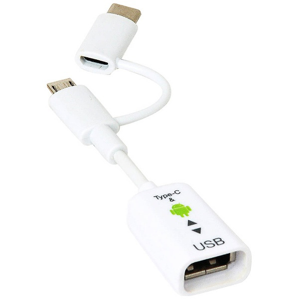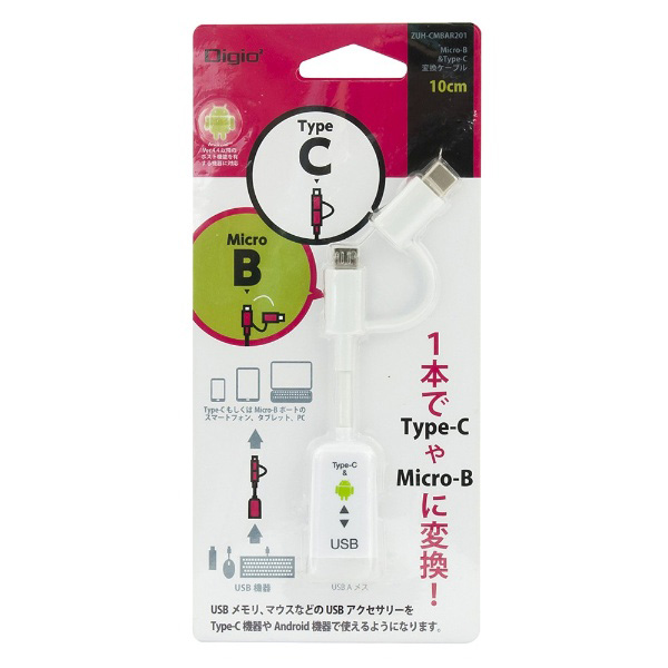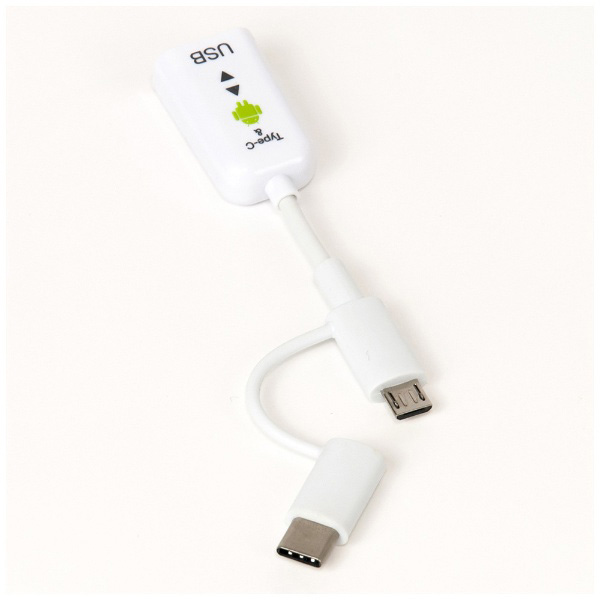 0.1m[USB-C+micro USB オス→メス USB-A]変換アダプタ ホワイト ZUH-CMBAR201W