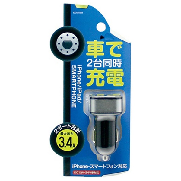 USBポートタイプ DC充電器 3.4A 2ポート ブラック IDCU2-034K
