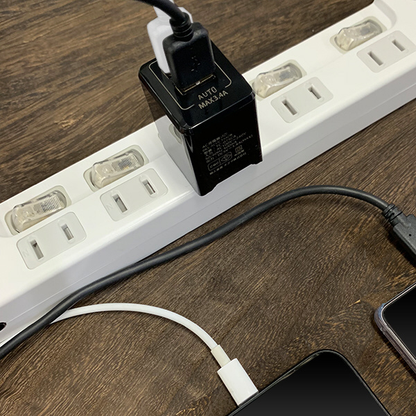 接続すると自動でお使いの端末機器を判別!スマートフォン、タブレット、iPad、iPhoneへの最適充電が可能なAC充電器。