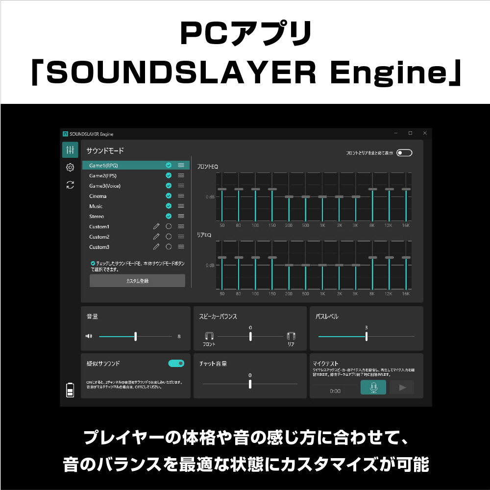 ■低音・音圧の強化と定位感を改善させ、ゲームフィールドへのさらなる没入感※1を実現