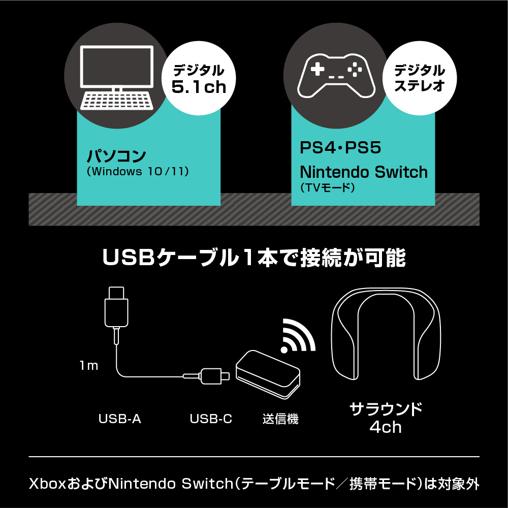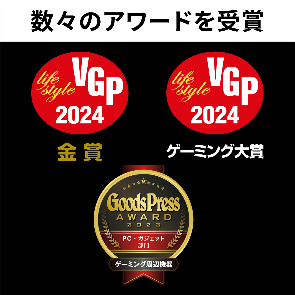 | 主な対応機種 | パソコン、PS4・PS5、Nintendo Switch(テレビモード時) ※対応機器と接続してご使用になる前に、必ず、各対応機器の取扱説明書をご確認ください。 |