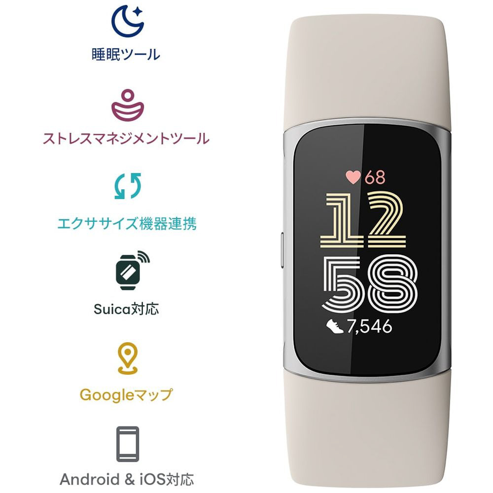 【Suica対応】フィットネストラッカー GPS搭載 Fitbit Charge 6 Porcelain Band / Silver Aluminum Case GA05185-AP