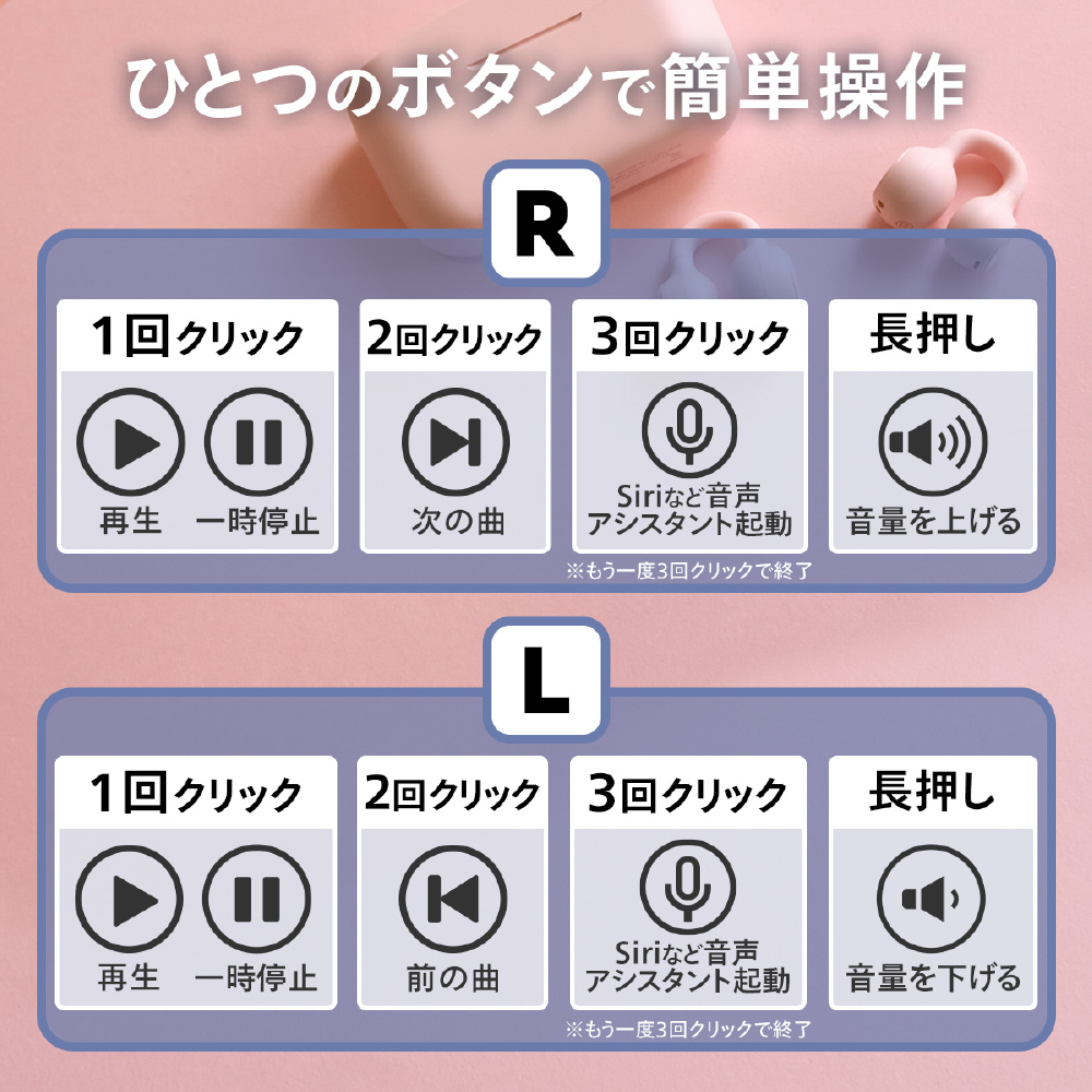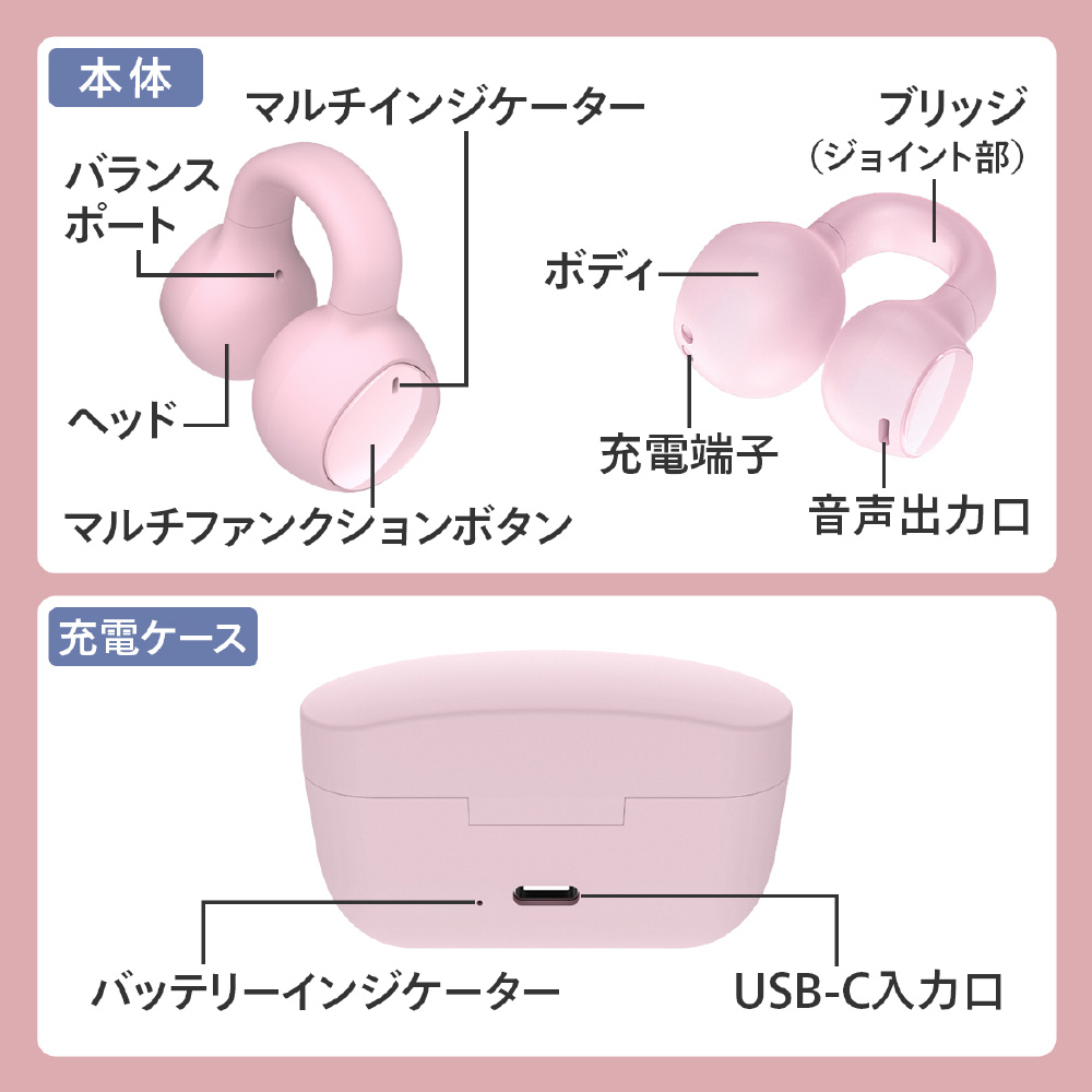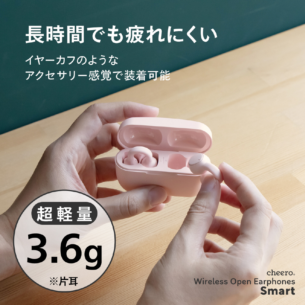 耳の穴をふさがず、清潔で快適な装着感!音楽を聴きながら周囲の音も聞こえるオープンイヤーワイヤレスイヤホン。超軽量イヤホンはイヤーカフのようなアクセサリー感覚で装着が可能です。