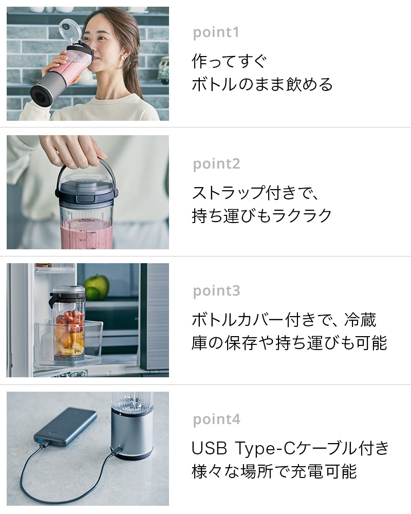 パワフルなかくはん力で、角氷や冷凍フルーツもしっかり砕く。静音パワフルなコードレスミキサー