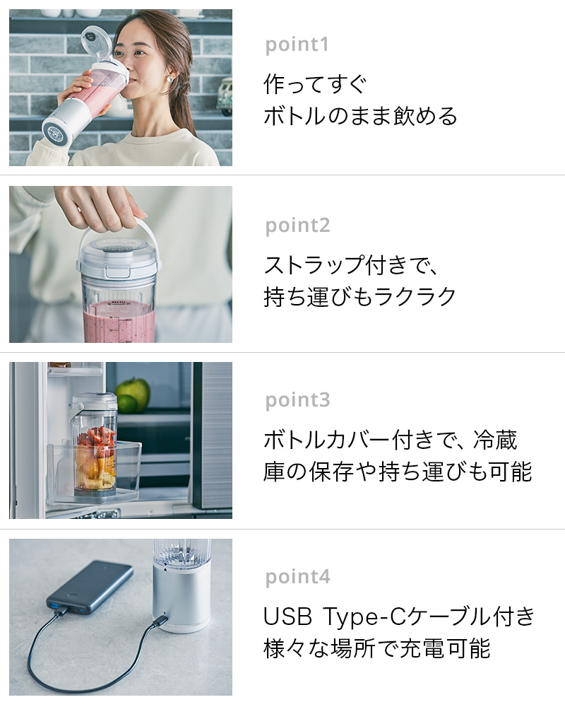 パワフルなかくはん力で、角氷や冷凍フルーツもしっかり砕く。静音パワフルなコードレスミキサー