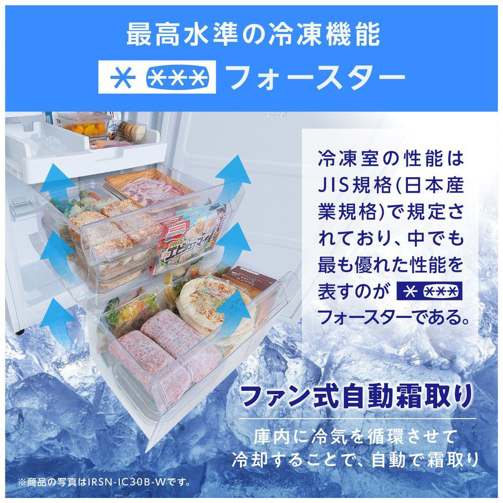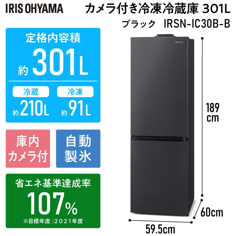 | 商品名 | カメラ付き冷蔵庫 ブラック IRSN-IC30B-B [59.5cm /301L /2ドア /右開きタイプ] 【基本設置料金セット】 |
