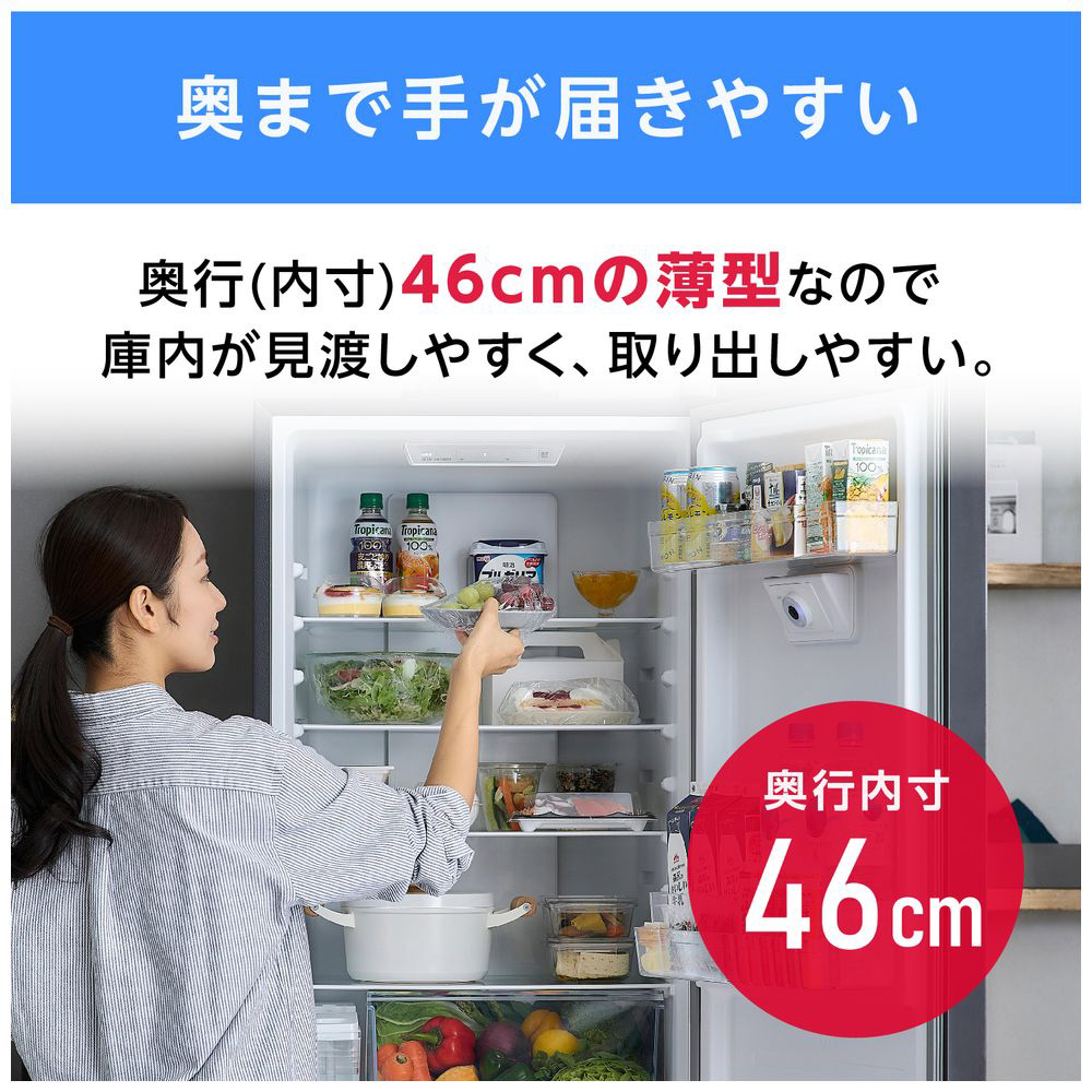 ■奥行(内寸)46cmの薄型なので、奥まで手が届き取り出しやすくなっています。