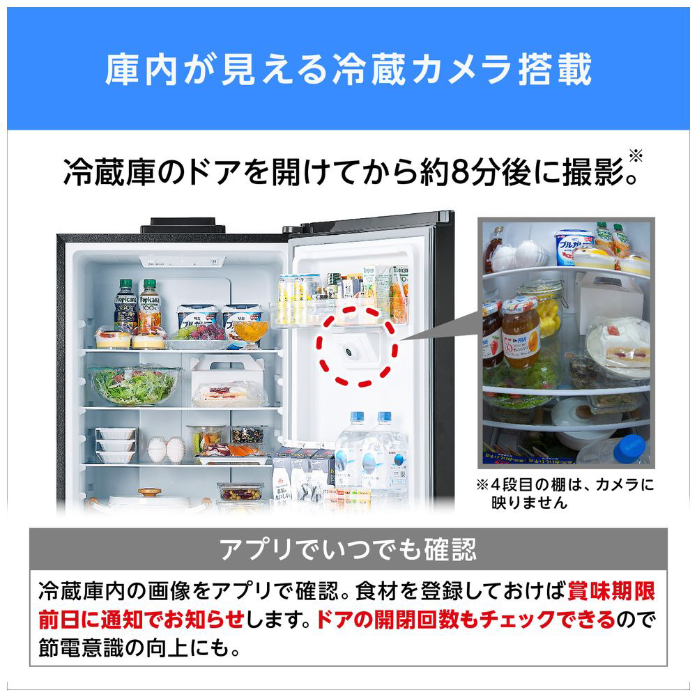 ■「冷蔵庫カメラ」搭載で、スマホにアプリをインストールすると、お買い物中でも冷蔵室内を表示できるので、食材の買い忘れや買いすぎ防止に、とても便利です。