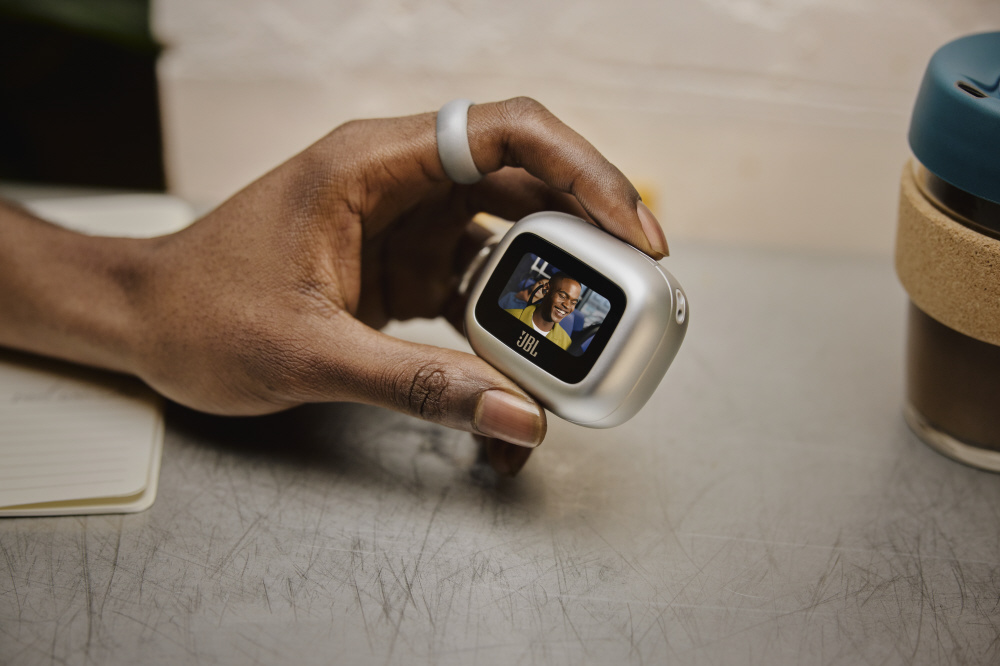フラッグシップモデル「TOUR PRO 2」で初搭載したスマートタッチディスプレイを本モデルにも搭載。新たに、操作画面が日本語に対応するほか、ケースを開いた状態でもメニューの操作が可能になりました。専用アプリ「JBL Headphones」では、オリジナル壁紙を追加・選択することができるため、ご家族やペット、お気に入りの画像を充電ケースに表示させて自分だけの充電ケースに仕上げることもできます。本体は「TOUR PRO 2」に比べ、体積-6%、重量-5%とコンパクトにリサイズされ、持ち運びに便利なストラップが装着可能なホールも新搭載しています。