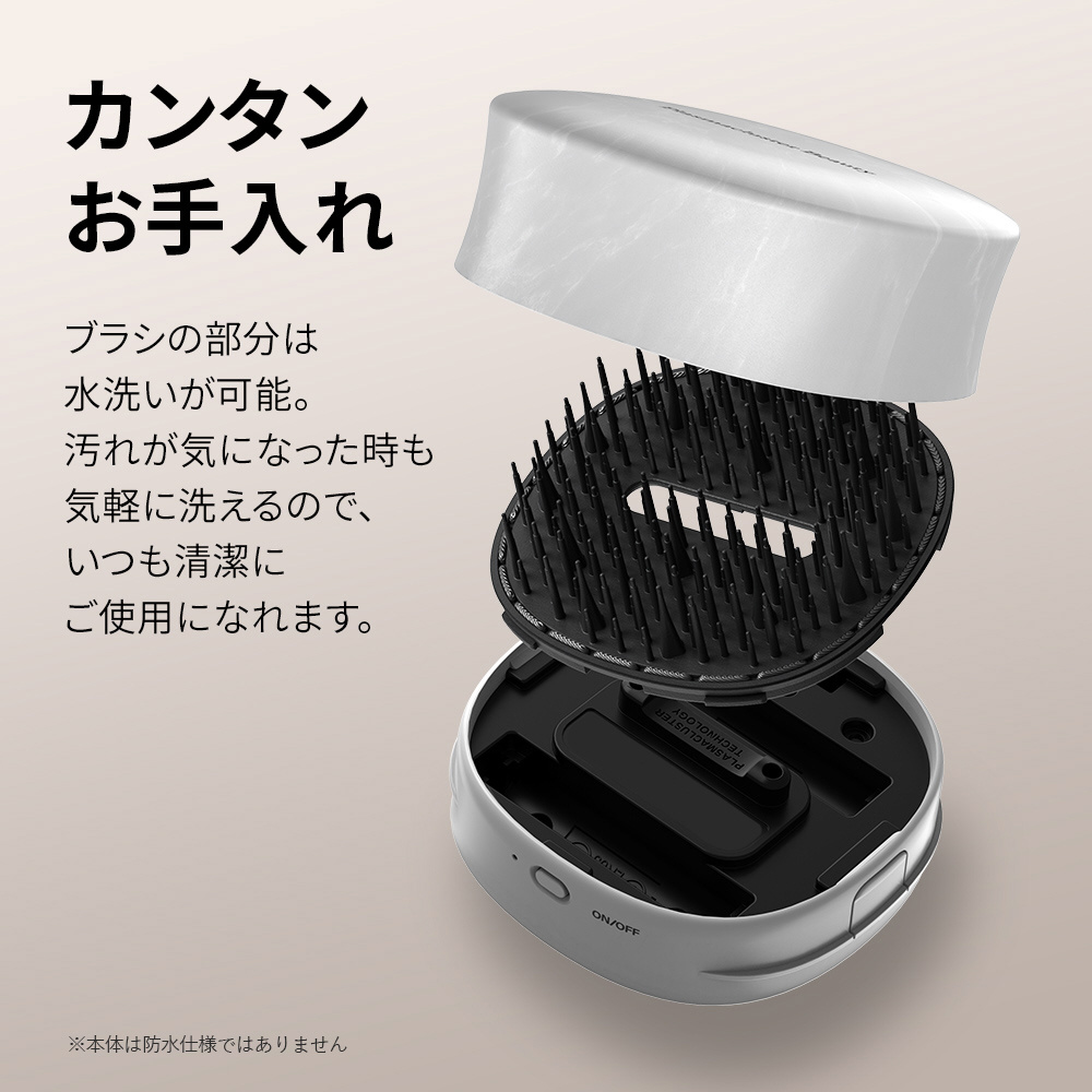 ・ブラッシングすると、髪はプラスに、ブラシはマイナスに帯電します。プラズマクラスターにより、ブラシ側はプラスイオンが、髪側はマイナスイオンが、それぞれの静電気を抑えます。