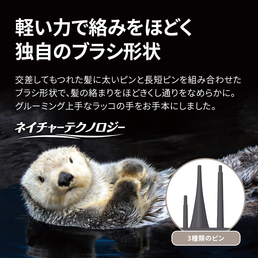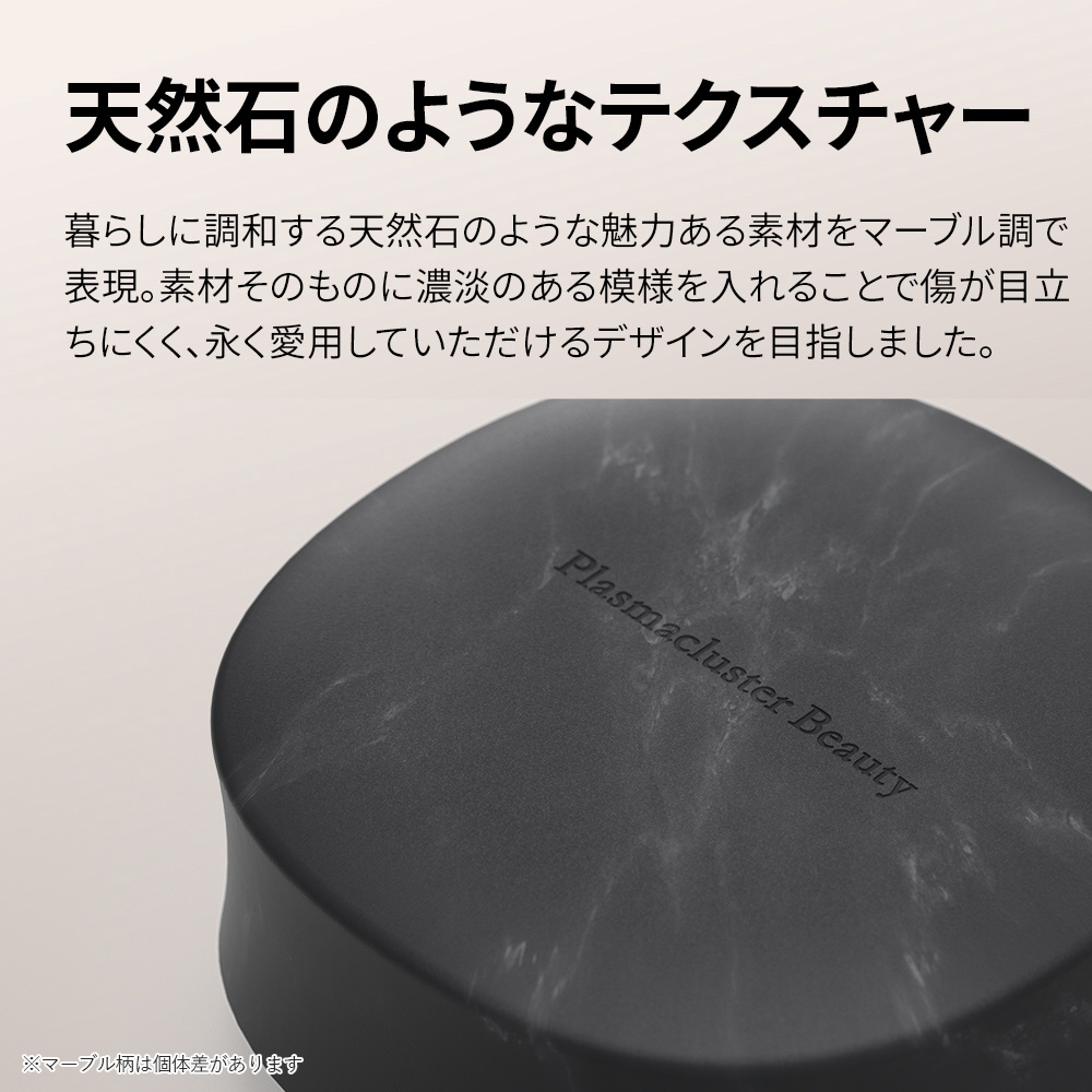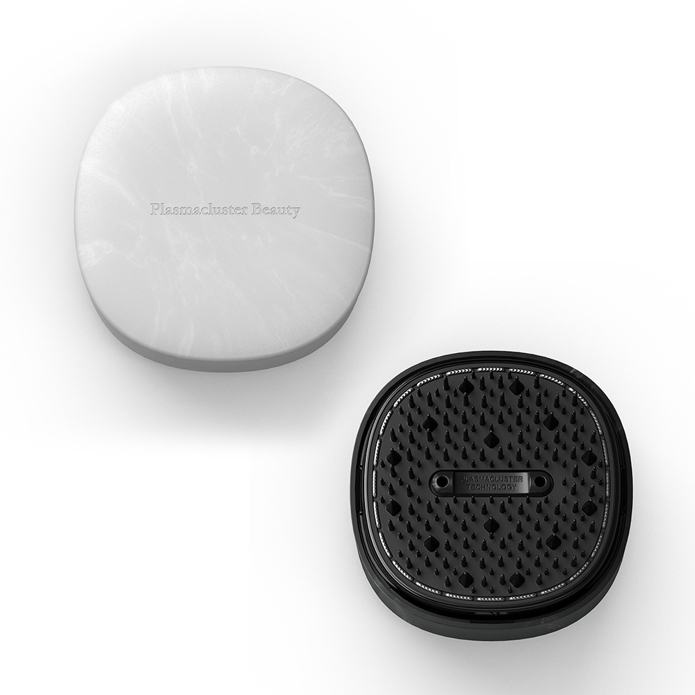 ・ブラッシングすると、髪はプラスに、ブラシはマイナスに帯電します。プラズマクラスターにより、ブラシ側はプラスイオンが、髪側はマイナスイオンが、それぞれの静電気を抑えます。