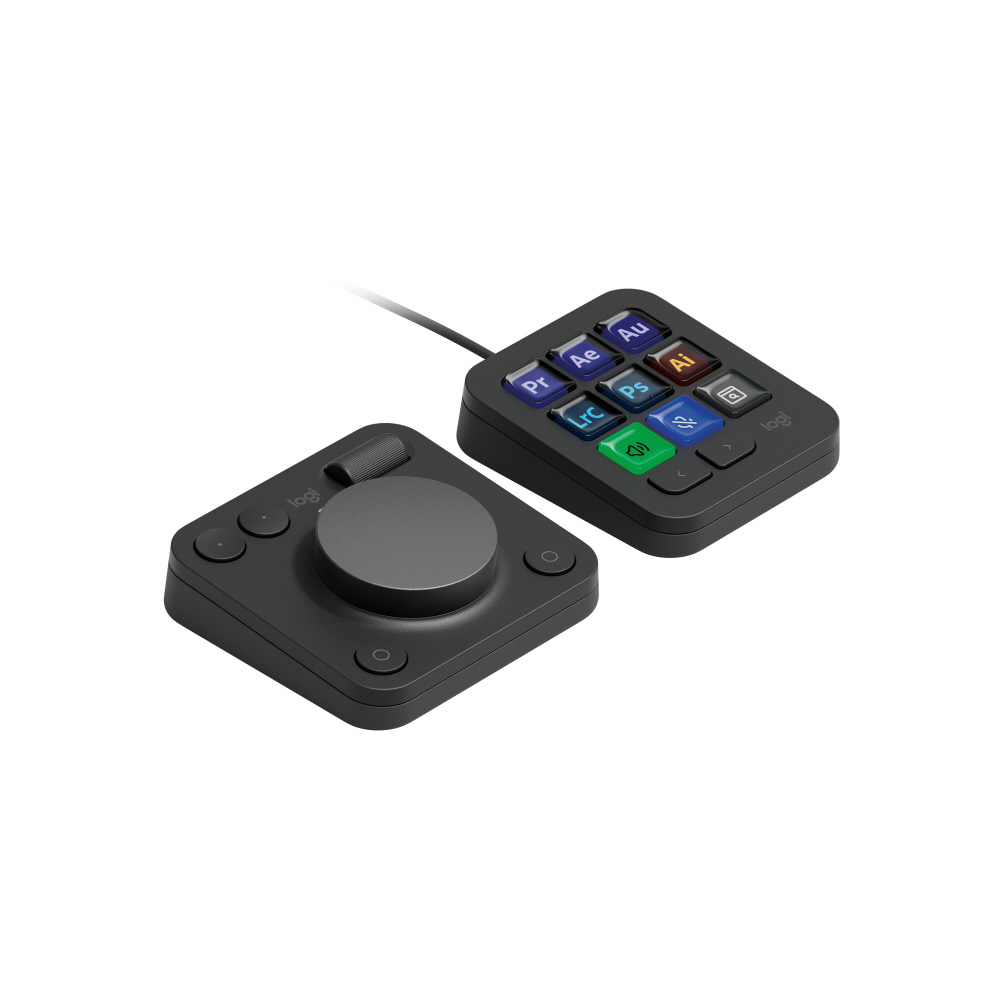 MX Creative Consoleでクリエイティブなワークフローを極めて、創造に集中しましょう。カスタマイズ可能なLCDディスプレイKeypadを使って編集ツールやアクションに簡単にアクセスし、ワイヤレスDialpad上の精確なタクタイルアナログコントロールを使ってコントロール。