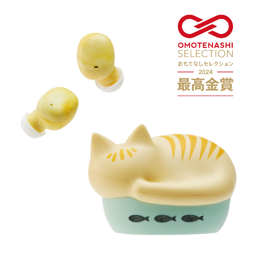 小さく丸くなって眠る猫をモチーフにした完全ワイヤレスイヤホン。