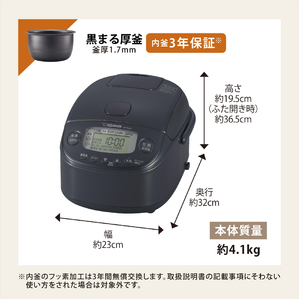 | 内釜仕様 | 黒まる厚釜(厚さ1.7mm) |